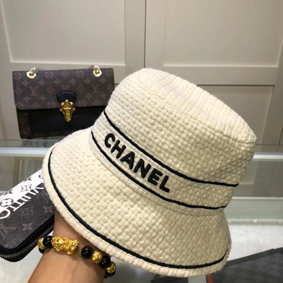 CHANEL CC SMALL BRIM BUCKET HAT WHITE