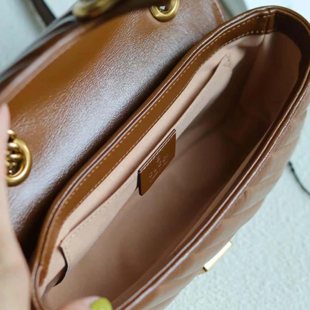 - Brown diagonal matelassé leather
