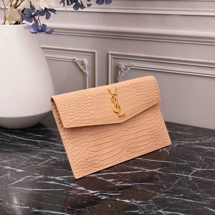 Saint Laurent Envelope Matelassé Grain De Poudre Dark Beige 24cm/ 9.4in